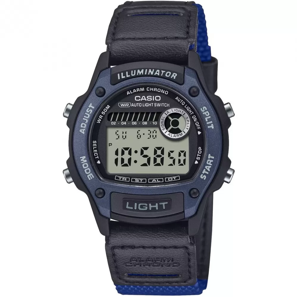 Casio Collection W‑220HF‑2AVEF – digitální hodinky s modrým akcentem a kombinovaným řemínkem. Model Casio Collection W‑220HF‑2AVEF kombinuje lehké a odolné provedení s přehledným digitálním displejem a moderními modrými akcenty, které hodinkám dodávají svěží, sportovní vzhled. Hodinky jsou navrženy pro praktické každodenní použití i volnočasové aktivity.
