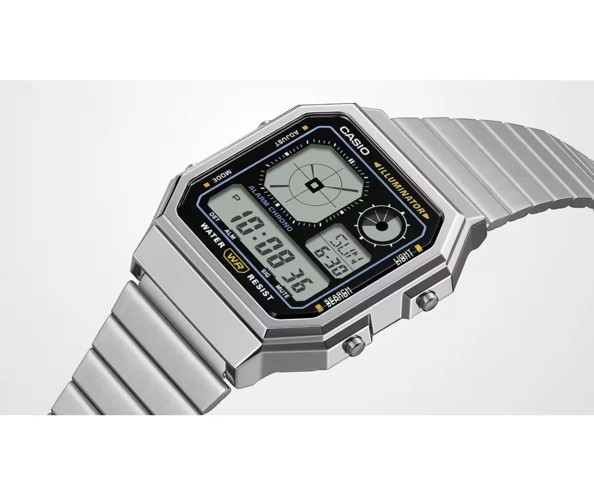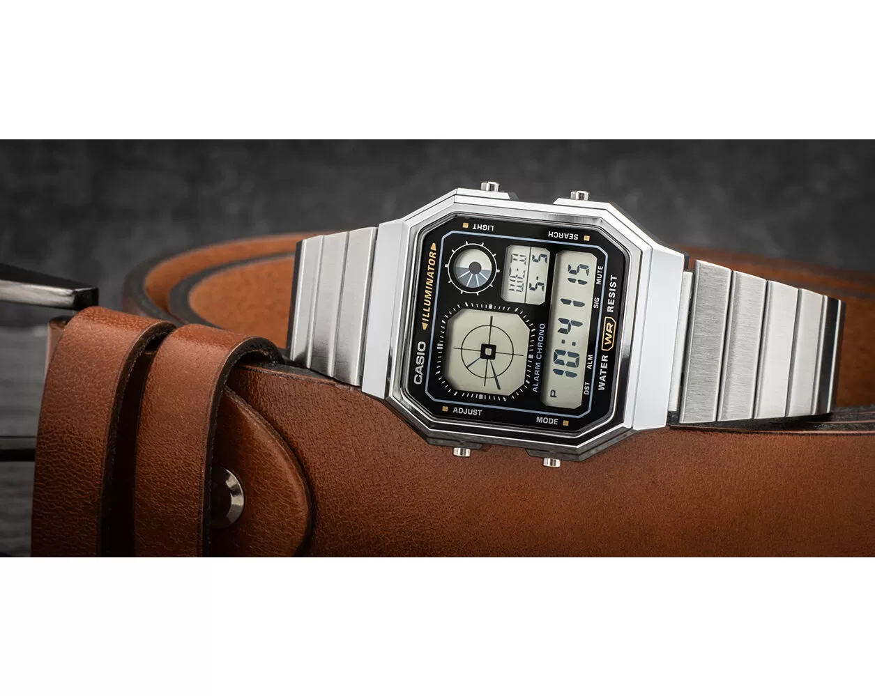 Kultovní retro digitálky se vracejí! Casio A130WE-1AEF přináší dokonale přepracovaný design 80. let, doplněný o kvalitní ocelové provedení a moderní spolehlivost. Elegantní stříbrný model s výrazným černým rámečkem působí čistě a hodí se ke každému outfitu – od volnočasového po formální.