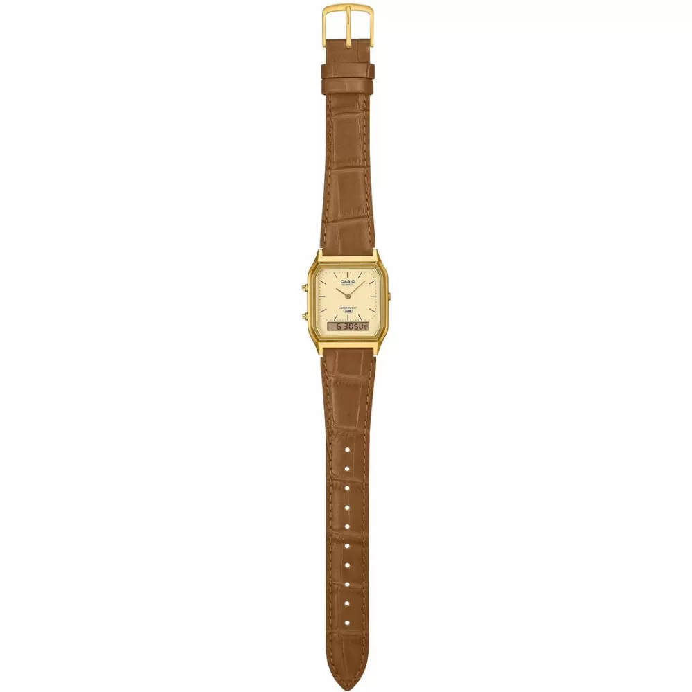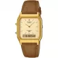 Casio AQ-230EGL-9AEF – retro elegance s duálním časem. Model AQ-230EGL-9AEF spojuje klasický analogový styl s praktickým digitálním displejem. Tento ikonický retro kousek přináší nadčasový vzhled 80. let v kombinaci se stylovým koženým řemínkem a zlatým provedením, které působí elegantně, decentně a velmi moderně.