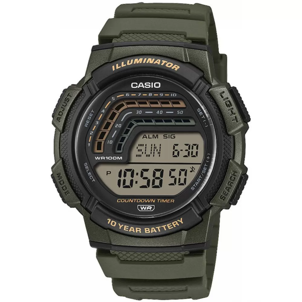 Casio WS-1800-3AVEF – digitální sportovní hodinky se zeleným řemínkem. Model Casio WS-1800-3AVEF je praktický digitální model určený pro každodenní nošení i volnočasové aktivity. Nabízí přehledné zobrazení času, základní užitečné funkce a lehkou, pohodlnou konstrukci. Oproti klasické černé variantě zaujme zeleným pryskyřicovým řemínkem, který hodinkám dodává svěží sportovní vzhled.