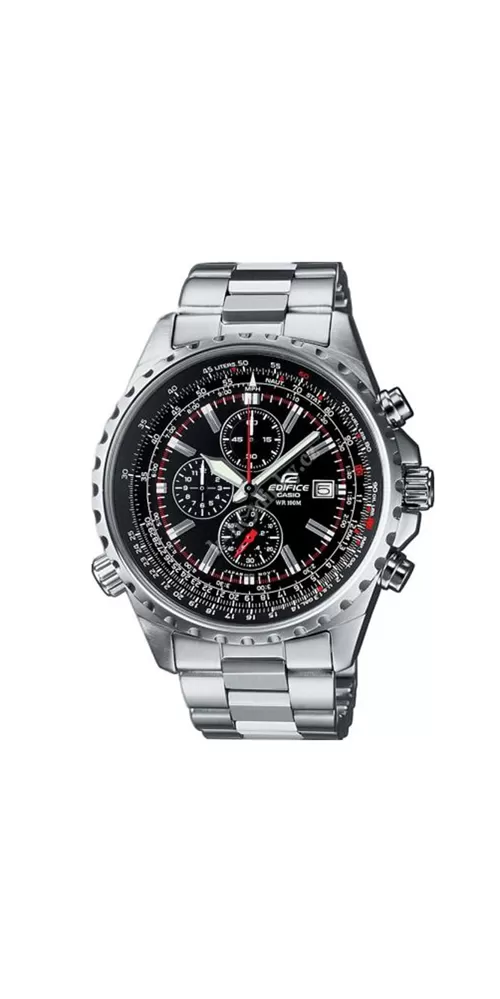 Casio Edifice EF‑527D‑1AVEF – sportovní chronograf s technickým designem. Model EF‑527D‑1AVEF kombinuje precizní chronograf, robustní nerezovou konstrukci a moderní sportovní design. Hodinky nabízejí přehledný ciferník s třemi subčíselníky, který zajišťuje snadné sledování času i přesných měření, a doplňují ho výrazné ručičky a kontrastní indexy pro dobrou čitelnost.