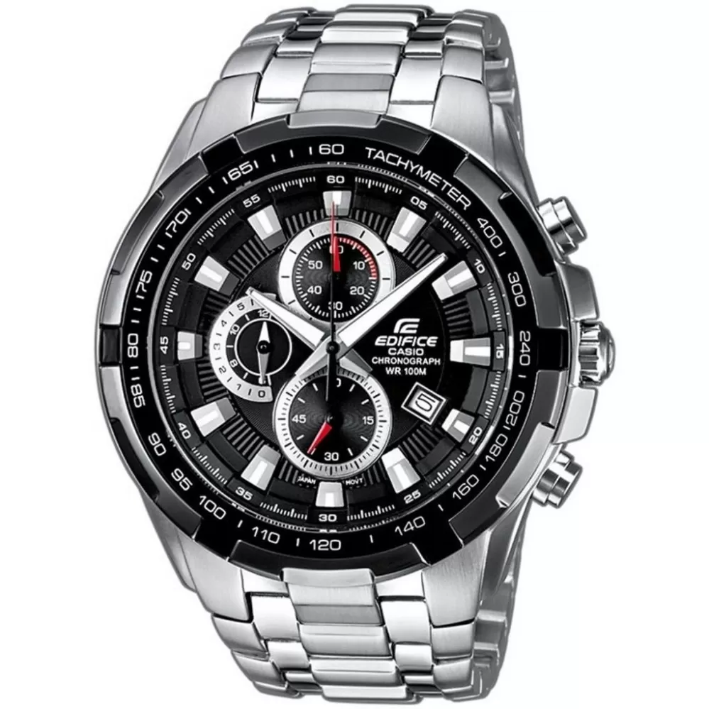 Casio Edifice EF‑539D‑1A – sportovní chronograf s elegantním ciferníkem. Model EF‑539D‑1A kombinuje sportovní charakter, precizní chronograf a nerezovou konstrukci, která zajišťuje dlouhou životnost a elegantní vzhled. Hodinky jsou vhodné pro každodenní nošení i pro aktivní životní styl. Černý ciferník s kontrastními ručičkami a třemi subčíselníky zajišťuje snadnou čitelnost a moderní vzhled.