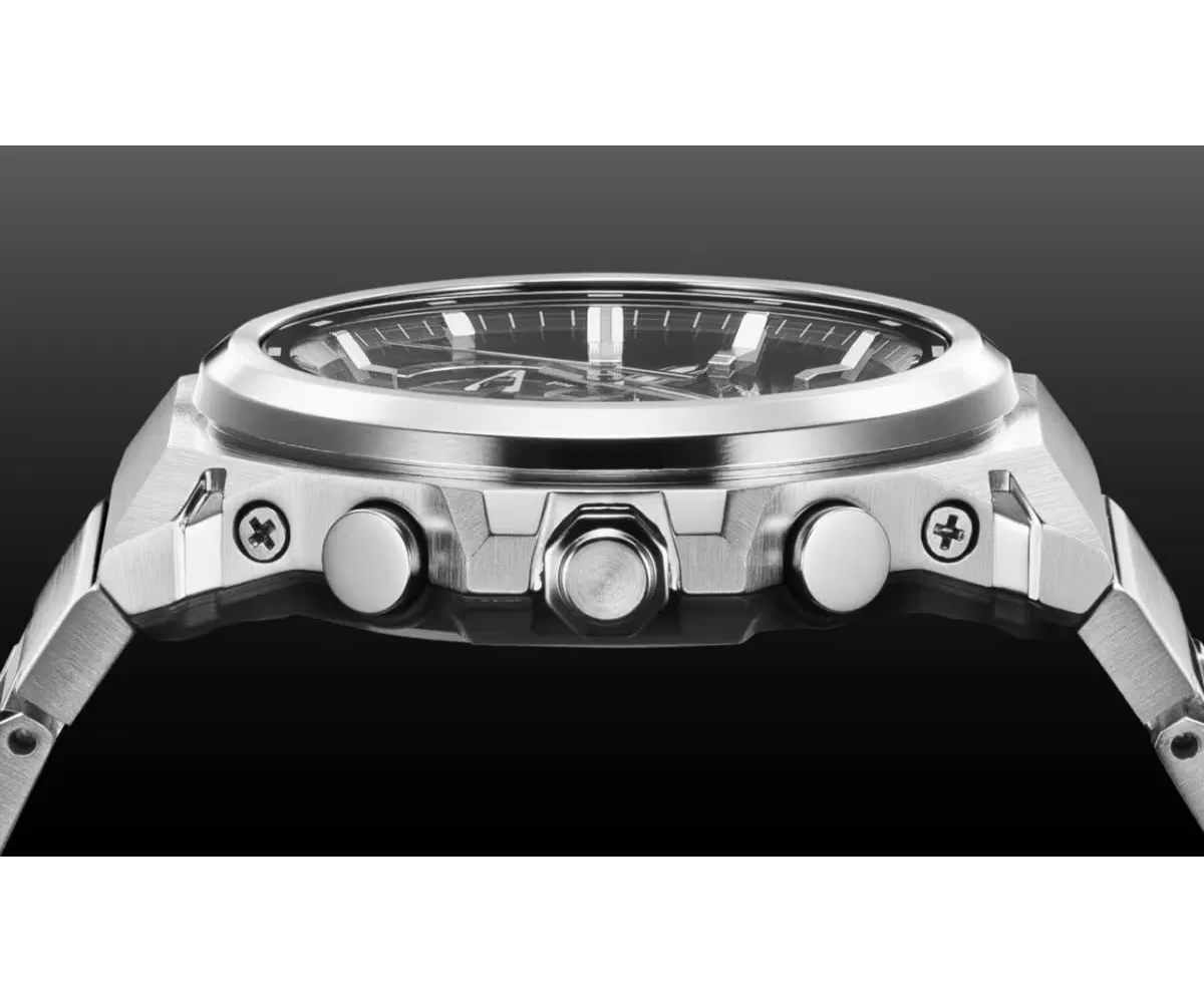 Casio G-Shock GST-B1000D-1AER – robustní elegance v celokovovém provedení. Model GST-B1000D-1AER z řady G-Steel spojuje masivní konstrukci G-Shock s elegantním ocelovým vzhledem a nejmodernějšími technologiemi. Díky solárnímu napájení, Bluetooth propojení a vrstvené konstrukci odolné proti nárazům jsou tyto hodinky ideální volbou pro každého, kdo hledá kombinaci vysoké funkčnosti, luxusního vzhledu a maximální odolnosti.