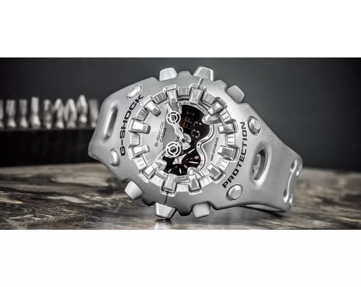 Casio G‑Shock GA‑V01A‑8AER – odolné digitální hodinky s moderním sportovním designem. Model Casio G‑Shock GA‑V01A‑8AER přináší klasickou odolnost G‑Shock v moderním pojetí s digitálním zobrazením času a přehledným rozhraním. Hodinky se vyznačují robustní konstrukcí a sportovním vzhledem, doplněným o šedé provedení pouzdra a řemínku, které působí univerzálně a dynamicky.