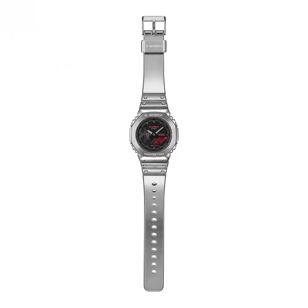 Design a využití - Model GM-2100YRA-8AER je určen pro uživatele, kteří chtějí spojit sportovní odolnost G-Shock s elegantnějším kovovým vzhledem. Díky kombinaci oceli a technického designu se hodí jak ke streetwearu, tak k civilnějším outfitům.