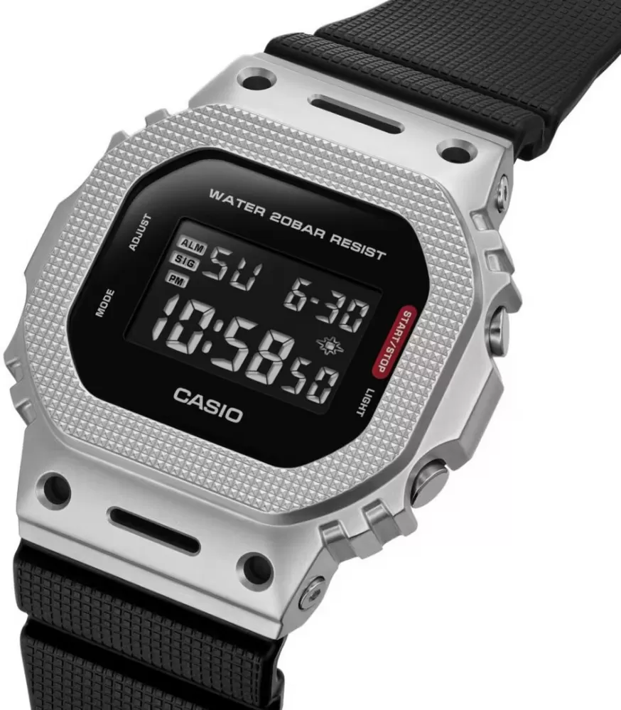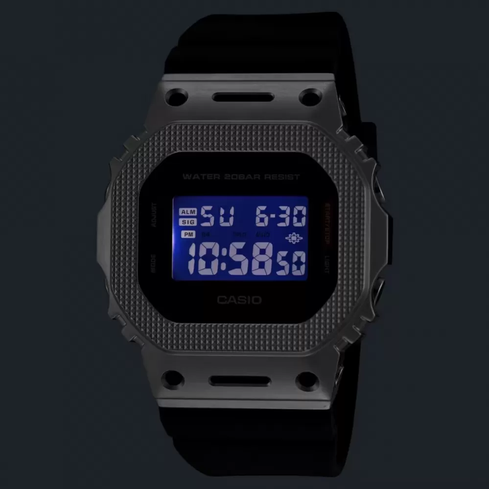 Casio G-Shock GM-5600M-1ER – ikonický design 5600 v kovovém kabátě. Model GM-5600M-1ER spojuje legendární tvar původního G-Shocku 5600 s moderními materiály a luxusním kovovým vzhledem. Robustní hranaté pouzdro, kovový rámeček a digitální displej dávají hodinkám nadčasový styl, který obstojí v každodenním životě i náročných podmínkách.