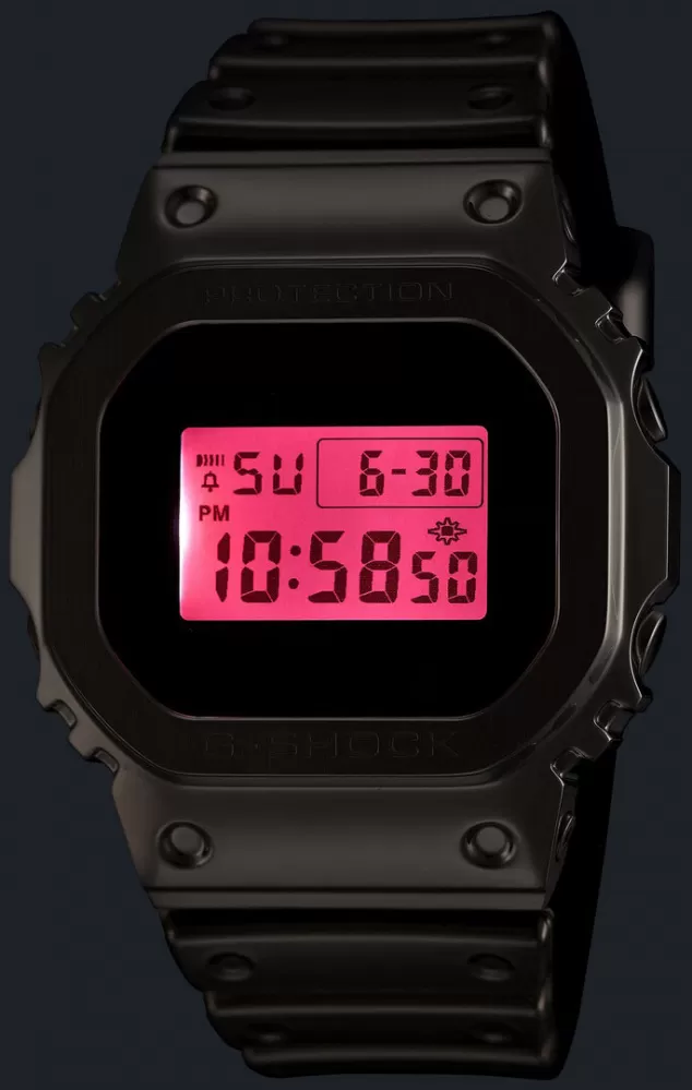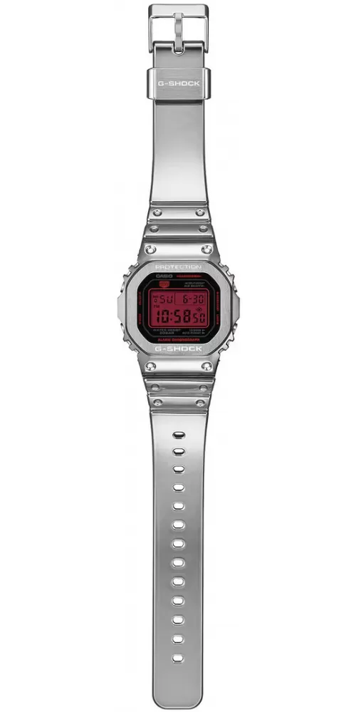 Design a využití - GM-5600YRA-8ER patří do tzv. Fine Metallic Series, která staví na kombinaci kovu a moderních barevných akcentů. Stříbrné tělo doplněné o červený negativní displej vytváří výrazný kontrast a lehce futuristický vzhled.
