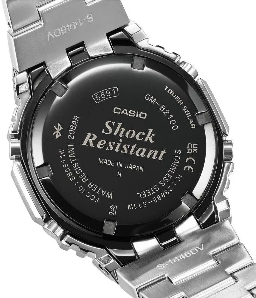 Konstrukce využívá technologii Shock Resistant s vnitřním pryskyřicovým jádrem, které tlumí nárazy, zatímco ocelový plášť zajišťuje pevnost a prémiový dojem. Model spojuje tradiční odolnost G-Shock s kovovým designem vhodným i pro formálnější příležitosti.