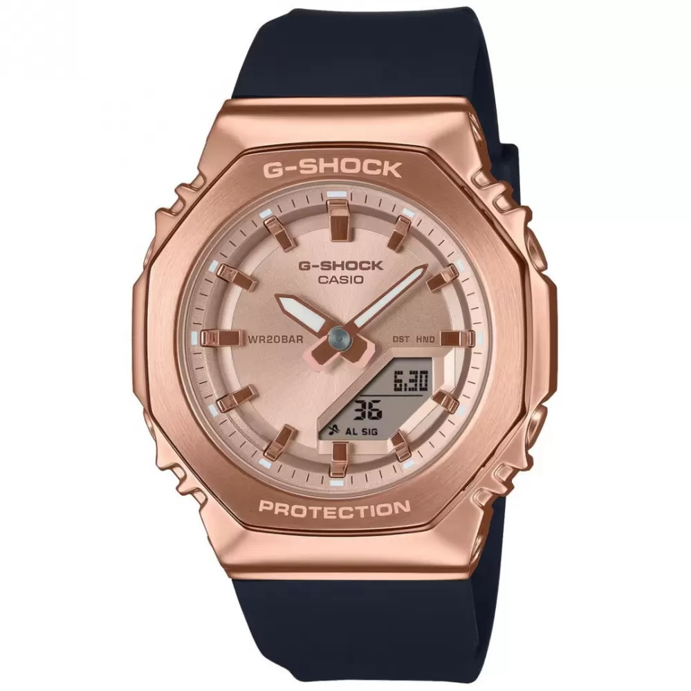 Elegance a odolnost v dokonalé rovnováze - Casio GM-S2110PG-1A4ER je ideální volbou pro ty, kteří chtějí odolné sportovní hodinky s elegantním kovovým akcentem. Spojení ikonického osmihranného tvaru, kompaktní velikosti a růžově zlaté lunety dělá z tohoto modelu stylový doplněk vhodný jak pro každodenní nošení, tak pro výraznější outfit.