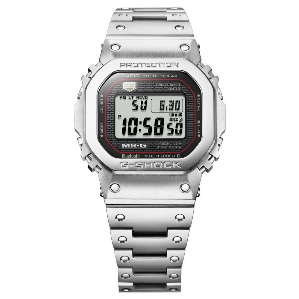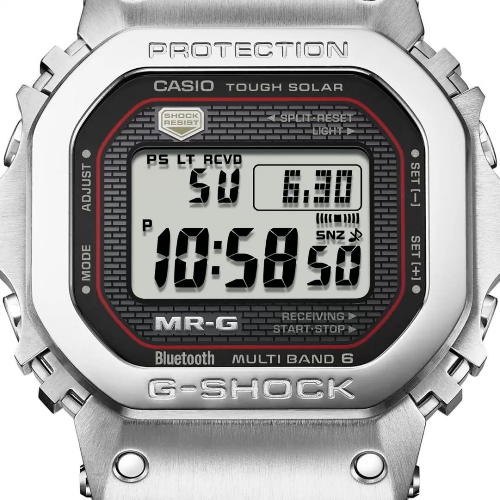 Casio G-Shock MRG-B5000D-1DR – mistrovské dílo odolnosti a technologie. Model MRG-B5000D-1DR je špičkovou verzí řady MR-G, která představuje nejvyšší úroveň inženýrství a precizního zpracování v rámci G-Shock. Tento model čerpá inspiraci z legendární řady 5600, známé ikonickým čtvercovým tvarem, ale posouvá jej do prémiového celokovového provedení kombinující nerezovou ocel a DLC povrchovou úpravu pro maximální odolnost proti poškrábání a opotřebení.