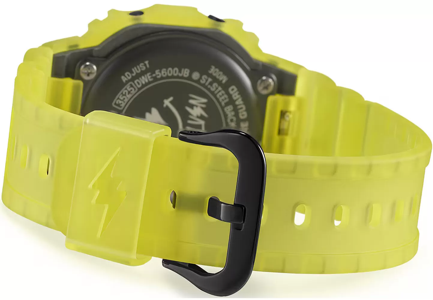 Speciální barevná kombinace černé s žlutými akcenty dává hodinkám moderní, výrazný a sportovní charakter. DWE-5600JB je také limitovanou edicí, což z něj činí atraktivní kousek pro sběratele a fanoušky G-Shock.