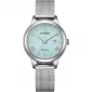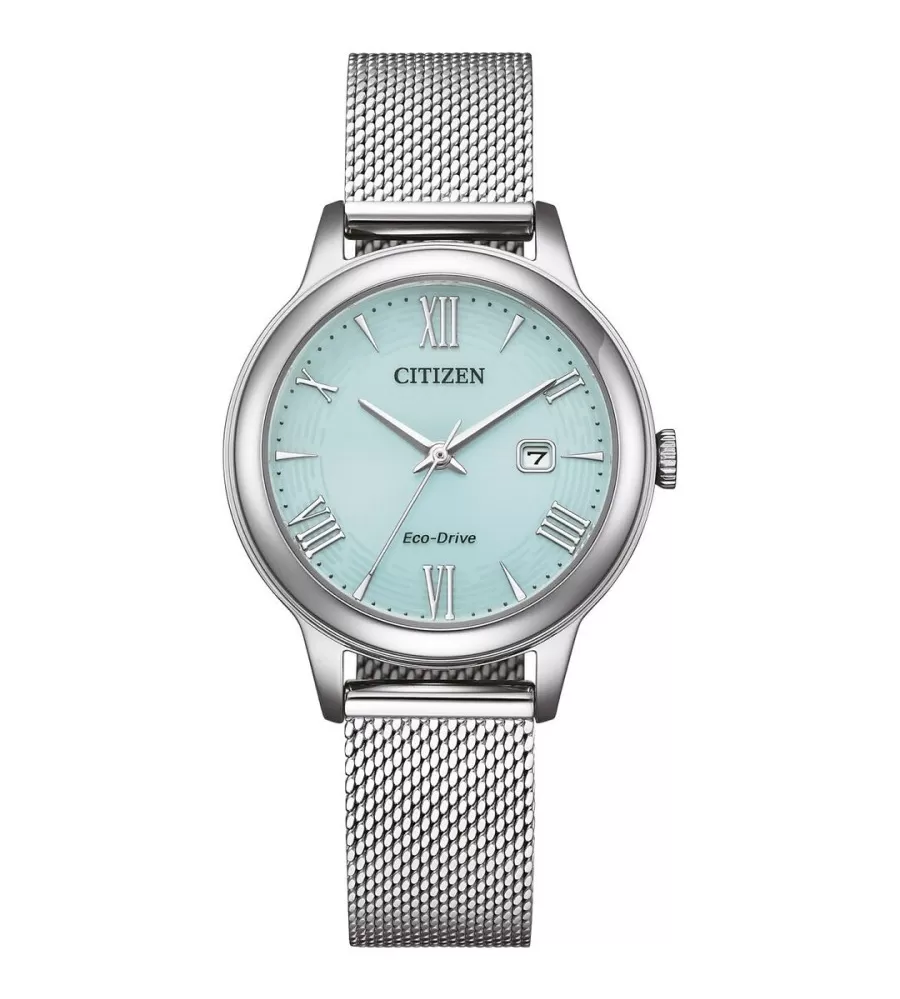 Tyto hodinky jsou vybaveny technologii Eco-Drive, která využívá světlo k napájení strojku. Pouzdro mají z nerezové oceli v kulatém tvaru o průměru 32 mm. Ciferník je decentní, s kombinací římských číslic a jednoduchým indexů, laděný do pastelově modré barvy. Ciferník chrání minerální sklíčko. Vodotěsnost mají hodinky 100 m, což umožňuje například plavání.