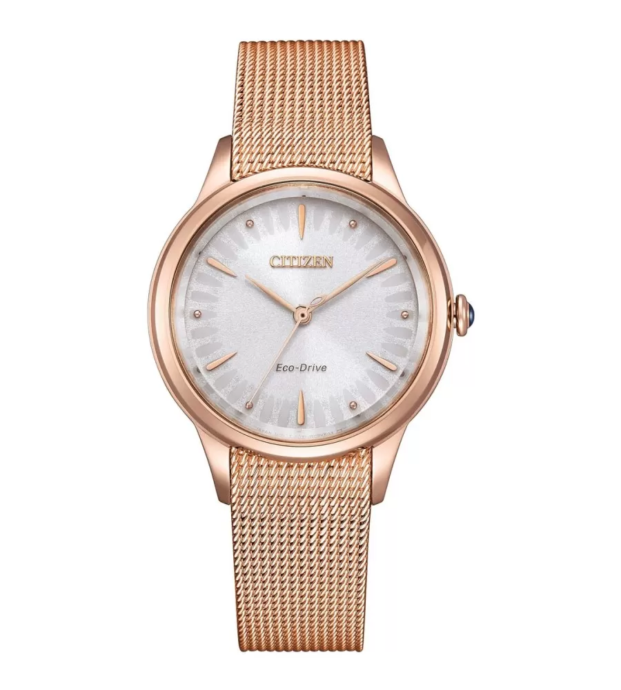 Tyto dámské hodinky jsou poháněny technologií Eco-Drive, která využívá světlo jako zdroj energie. Pouzdro je z nerezové oceli o průměru přibližně 32 mm. Ciferník má perleťový nádech v odstínu šedé barvy a doplněn je jednoduchými ryskami a tečkami místo indexů hodin. Vodotěsnost modelu je 50 m což znamená, že hodinky snesou stříkající vodu, mytí rukou či déšť, ale nejsou určeny pro plavání. Náramek hodinek je v milánském stylu s jemnou strukturou.