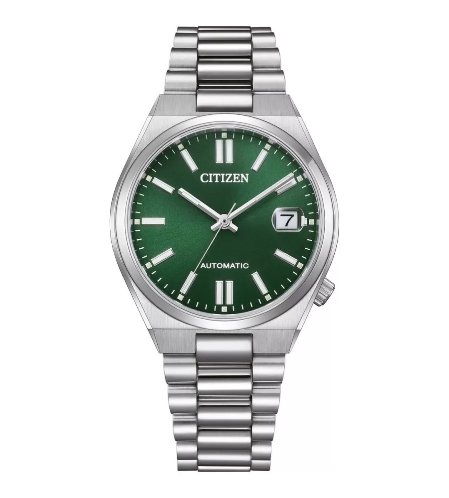 Jde o mechanický automat s vlastním strojkem kalibr 8210, který nabízí rezervu chodu přibližně 42 hodin a možnost ručního nátahu i nastavení sekundové ručičky při nastavování času. Na ciferníku se kromě hodin, minut a sekund nachází i datumové okénko zvětšené lupou. Pouzdro i tah jsou vyrobeny z nerezové oceli, kryté safírovým sklem, a zadní průhledné dýnko odhaluje chod strojku. Výrazným prvkem tohoto modelu je zelený ciferník s jemným slunečným efektem.