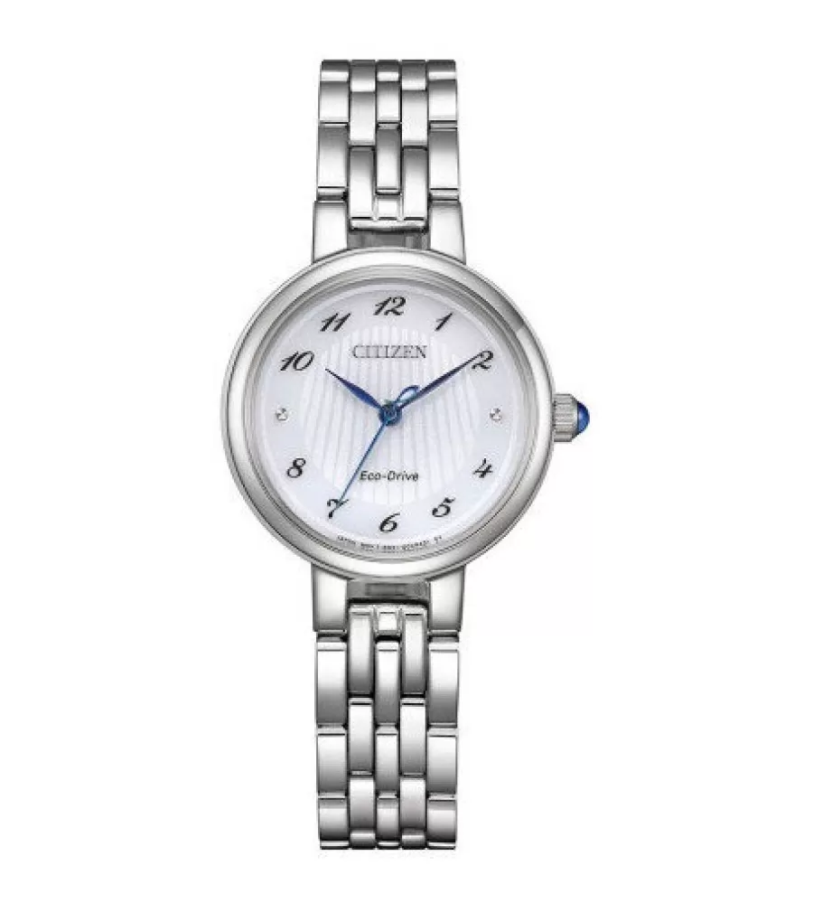 Dámské hodinky Citizen Elegant Eco-Drive EM0990-81A jsou luxusním a nadčasovým doplňkem, který podtrhne ženský styl při každodenním nošení i slavnostních příležitostech. Díky technologii Eco-Drive jsou napájeny světlem, takže není nutná výměna baterie a jejich provoz je zcela bezstarostný. Pouzdro i náramek z kvalitní nerezové oceli zajišťují dlouhou životnost a vysokou odolnost. Jemný světlý ciferník s elegantními indexy působí čistě, sofistikovaně a velmi žensky. Přehledné ručky zajišťují výbornou čitelnost a podtrhují luxusní charakter hodinek. Vodotěsnost 50 m umožňuje bezpečné používání při běžných denních aktivitách.