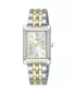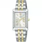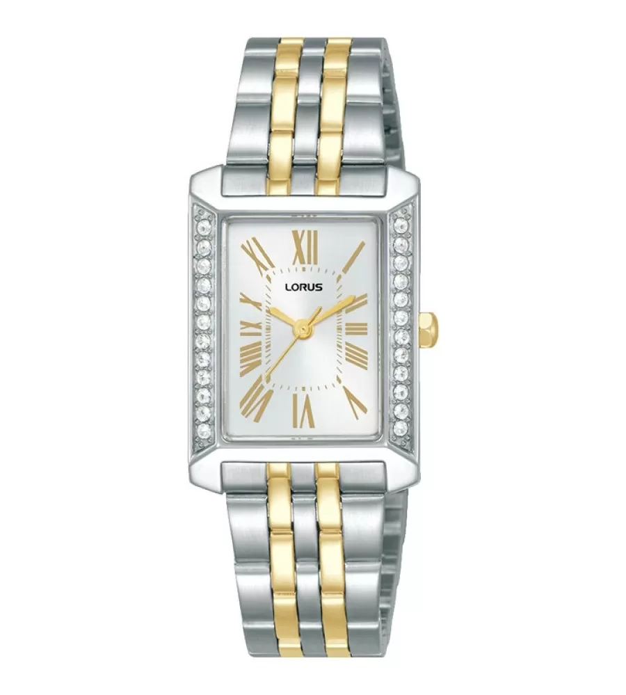 Dámské hodinky Lorus RG235YX9 zaujmou elegantním obdélníkovým pouzdrem z nerezové oceli, které je po stranách jemně zdobené třpytivými kamínky a dodává celku luxusní vzhled. Světlý analogový ciferník s římskými číslicemi ve zlatém tónu působí velmi jemně a přehledně, přičemž je chráněn odolným minerálním sklíčkem. Dvoubarevný ocelový tah ve stříbrno-zlaté kombinaci zajišťuje pohodlné nošení a elegantní dojem. Hodinky jsou osazeny spolehlivým quartzovým strojkem a disponují vodotěsností 5 ATM, která je vhodná pro běžný kontakt s vodou, například při mytí rukou či sprchování. Díky svému nadčasovému designu jsou ideální volbou pro každodenní nošení i slavnostnější příležitosti.