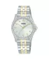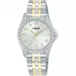 Dámské hodinky Lorus RG249YX9 působí velmi jemně, elegantně a vyváženě, přičemž spojují šperkový vzhled s každodenní praktičností. Kulaté pouzdro z nerezové oceli ve stříbrném provedení je doplněno lunetou osazenou třpytivými kamínky, které decentně orámují ciferník a dodávají hodinkám luxusní nádech. Světlý analogový ciferník se zlatými arabskými číslicemi a štíhlými ručičkami zajišťuje dobrou čitelnost a elegantní kontrast. Minerální sklíčko chrání ciferník při běžném nošení a spolehlivý quartzový strojek se stará o přesný chod. Ocelový tah v dvoubarevném provedení plynule navazuje na pouzdro, pohodlně se přizpůsobí zápěstí a podtrhuje celkově ženský a vkusný charakter tohoto modelu, přičemž vodotěsnost 5 ATM umožňuje bezstarostné používání při běžném kontaktu s vodou.