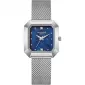 Vysoce elegantní hodinky pro ženy jsou zhotoveny z kvalitního kovu ve stříbrném provedení. Dominantou hodinek je hranaté pouzdro, které pohání spolehlivý strojek a baterie s dvouletou životností. Jemný číselník v modré perleti zdobí zirkony v briliantovém brusu a jednoduché ručičky a indexy hodin. Celý model doplňuje milánský tah, který je snadno nastavitelný a pohodlný.
