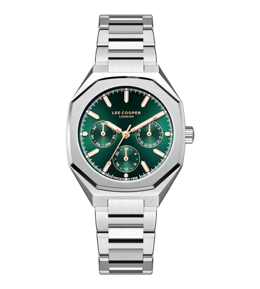 Dámské náramkové hodinky jsou vyrobeny z kvalitního kovu v leštěné úpravě. Pouzdro je poháněno spolehlivým strojkem a bateriím s dvouletou životností. Číselník v zelené barvě doplňují ručičky a indexy v jednoduchém designu. Hodinky budou dokonalým doplňkem na každý den a na každou společenskou akci.