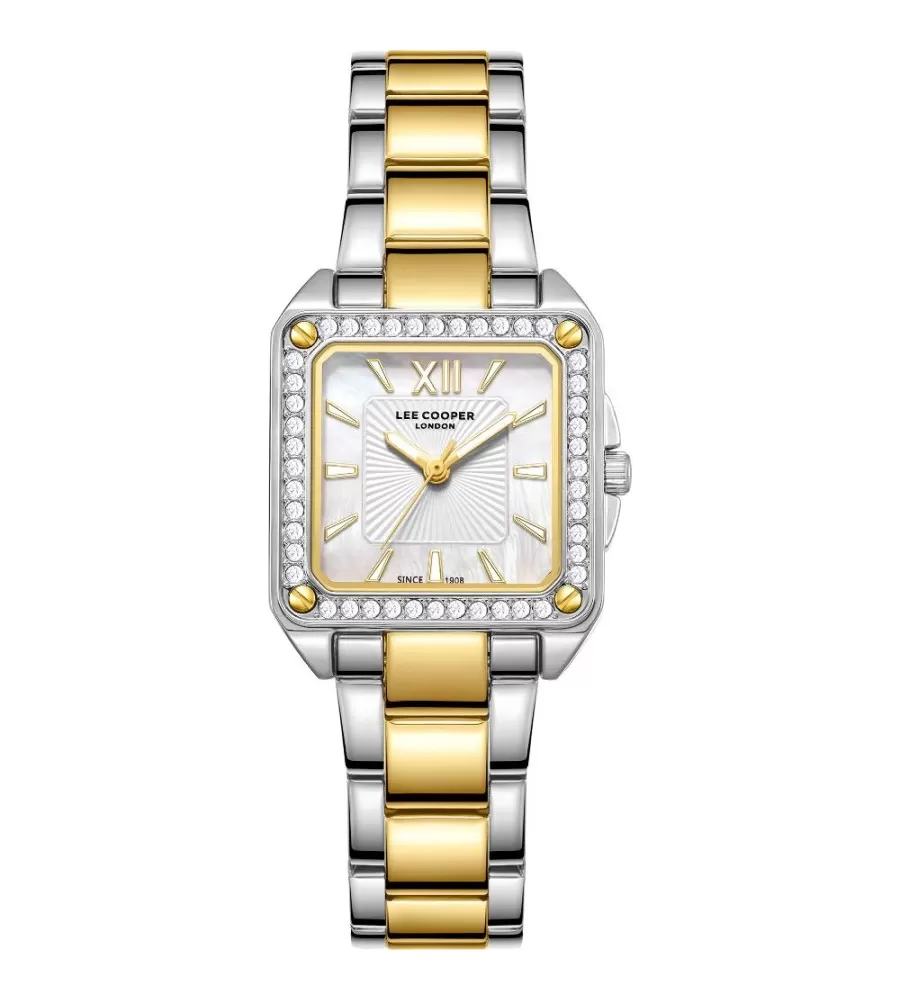 Originální model dámských náramkových hodinek je zhotoven z kvalitního kovu, který je místy ošetřen PVD povrchovou úpravou v barvě žlutého zlata. Dominantou hodinek je hranaté pouzdro osázeno zirkony v briliantovém brusu. zaujme Vám přehledný číselník doplněn o elegantní ručičky a indexy hodin. Tento model bude na Vašem zápěstí působit jako luxusní šperk.