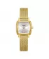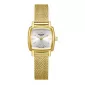 Dámský elegantní model zaujme na první pohled svým designem. Hranaté pouzdro a milánský tah působí velmi atraktivně a nadčasově. Model je vyroben z kvalitního kovu ve zlatavém provedení v kombinaci s bílým číselníkem, který doplňují zlaté indexy a ručičky. Hodinky jsou bateriově poháněny a těsní sprchování, mytí rukou nebo při dešti.