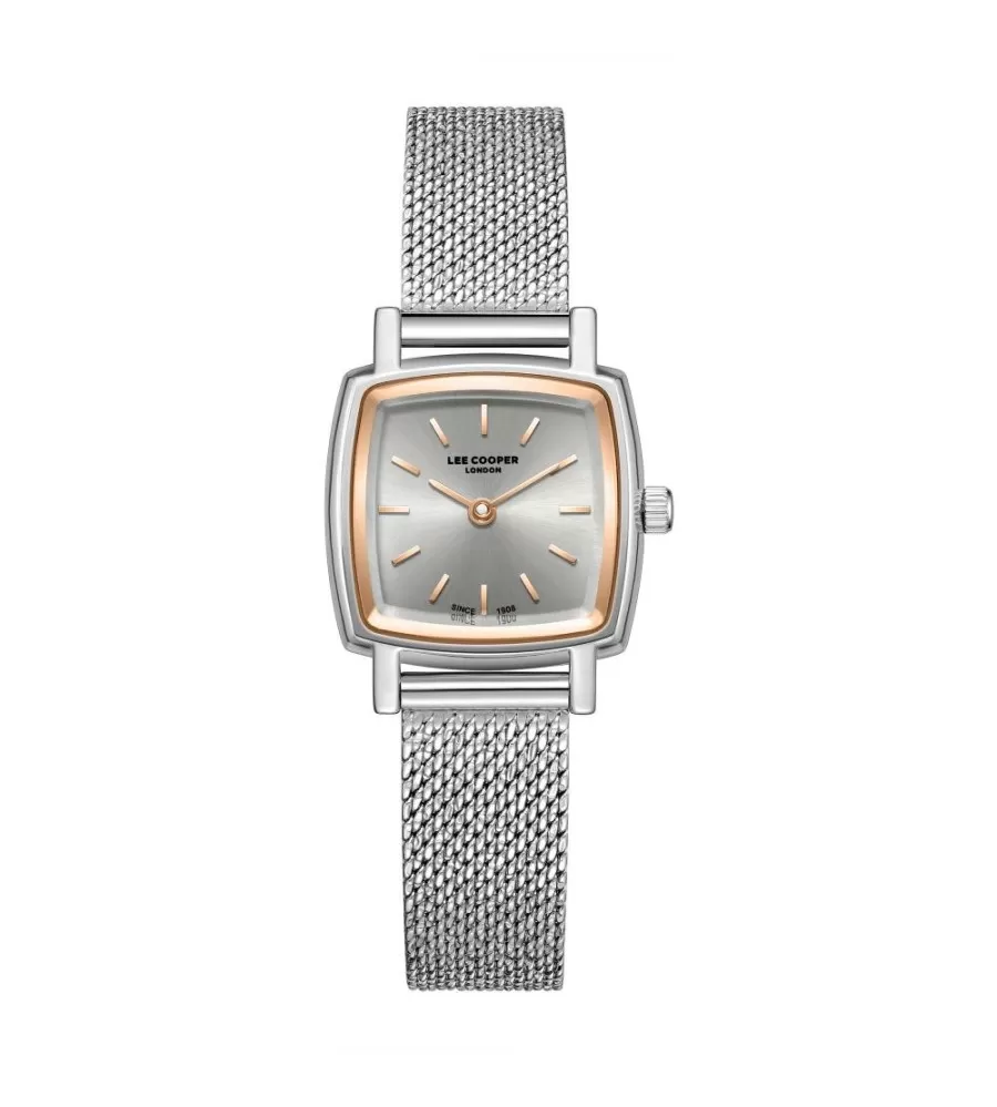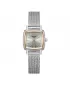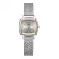 Dámský elegantní model zaujme na první pohled svým designem. Hranaté pouzdro a milánský tah působí velmi atraktivně a nadčasově. Model je vyroben z kvalitního kovu v lesklém provedení v kombinaci se stříbrným číselníkem, který doplňují růžové indexy a ručičky. Hodinky jsou bateriově poháněny a těsní sprchování, mytí rukou nebo při dešti.