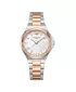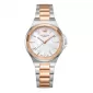 Dámské náramkové hodinky jsou vyrobeny z kvalitního kovu, který je místy ošetřen PVD povrchovou úpravou barvě růžového zlata. Kulaté pouzdro o průměru 33 mm je vlhkotěsné. Zvýrazněné je v přední části propracovanou lunetou. Číselník v decentním designu překvapí perletí, která každým Vaším pohybem mění tóny jemných odstínů. Hodinky jsou zajištěny bezpečnostní sponou.