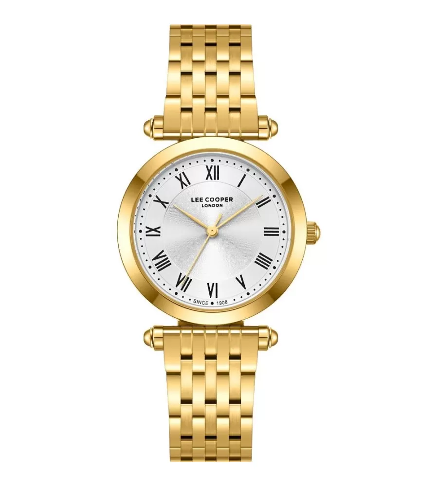 Velmi elegantní model dámských náramkových hodinek je zhotoven z kvalitního kovu se zlacením v barvě žlutého zlata. Velmi sofistikovaný vzhled podtrhuje provedení pouzdra o průměru 32 mm a číselník s římskými číslicemi. Tento model zaujme na společenských akcí ale vhodný je i pro každodenní nošení. Díky bezpečné sponě, budou hodinky dokonale držet na každém zápěstí.
