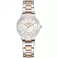 Dámské náramkové hodinky v klasickém designu jsou zhotoveny z kvalitního kovu ve stříbrném provedení. Místy je tah i pouzdro opatřeno PVD úpravou v růžové barvě zlata. Hodinky mají hladké pouzdro, které je osázeno čirými kameny pro zvýraznění Vašeho půvabu. Hodinky jsou vlhkotěsné a vhodné pro každodenní nošení.