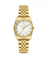Dámské náramkové hodinky jsou vyrobeny z kvalitního kovu, který je ošetřen PVD povrchovou úpravou barvě žlutého zlata. Kulaté pouzdro o průměru 30 mm je vlhkotěsné. Číselník v decentním designu je velmi přehledný a praktický. Hodinky jsou zajištěny bezpečnostní sponou.