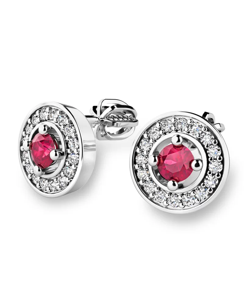 Nádherné luxusní dámské náušnice pecky osázené středovým rubínem a diamanty budou ideálním dárkem pro každou ženu. Náušnice jsou vyrobeny z bílého čtrnáctikarátového zlata - 585/1000 v lesklé povrchové úpravě. Vsazené diamanty jsou vybroušeny dokonalým briliantovým brusem, díky kterému dokonale odráží světlo a jejich brilance neuvěřitelné září z každého úhlu pohledu! Všechny kameny jsou pevně uchyceny krapnami. Vsazování diamantů a drahých kamenů provádějí naši nejzkušenější mistři zlatníci ručně pod mikroskopem s přesností na 0,01mm a proto nehrozí vypadnutí kamínků jako to bývá u strojně vyráběných náušnic. Celé náušnice působí dokonalým a luxusním dojmem! Náušnice se zapínají na šroubek. Šroubek pro balónek je umístěný cca 2 mm pod horní okraj náušnice a tedy krásně zakrývá dírku v uchu.