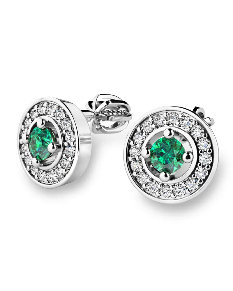 Nádherné luxusní dámské náušnice pecky osázené středovým smaragdem a diamanty budou ideálním dárkem pro každou ženu. Náušnice jsou vyrobeny z bílého čtrnáctikarátového zlata - 585/1000 v lesklé povrchové úpravě. Vsazené diamanty jsou vybroušeny dokonalým briliantovým brusem, díky kterému dokonale odráží světlo a jejich brilance neuvěřitelné září z každého úhlu pohledu! Všechny kameny jsou pevně uchyceny krapnami. Vsazování diamantů a drahých kamenů provádějí naši nejzkušenější mistři zlatníci ručně pod mikroskopem s přesností na 0,01mm a proto nehrozí vypadnutí kamínků jako to bývá u strojně vyráběných náušnic. Celé náušnice působí dokonalým a luxusním dojmem! Náušnice se zapínají na šroubek. Šroubek pro balónek je umístěný cca 2 mm pod horní okraj náušnice a tedy krásně zakrývá dírku v uchu.