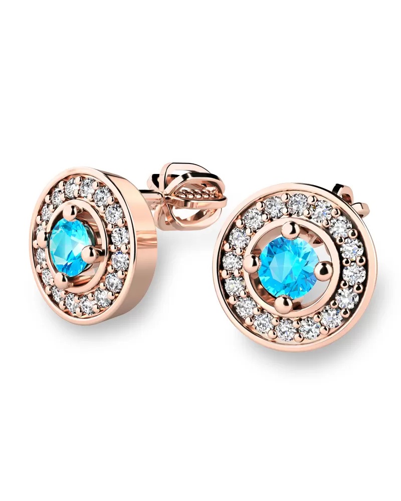 Náušnice růžové zlato 585/1000, přírodní diamanty a topazy, 10921-CV-TPZ