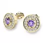 Nádherné luxusní dámské náušnice pecky osázené středovým ametystem a diamanty budou ideálním dárkem pro každou ženu. Náušnice jsou vyrobeny ze žlutého čtrnáctikarátového zlata - 585/1000 v lesklé povrchové úpravě. Vsazené diamanty jsou vybroušeny dokonalým briliantovým brusem, díky kterému dokonale odráží světlo a jejich brilance neuvěřitelné září z každého úhlu pohledu! Všechny kameny jsou pevně uchyceny krapnami. Vsazování diamantů a drahých kamenů provádějí naši nejzkušenější mistři zlatníci ručně pod mikroskopem s přesností na 0,01mm a proto nehrozí vypadnutí kamínků jako to bývá u strojně vyráběných náušnic. Celé náušnice působí dokonalým a luxusním dojmem! Náušnice se zapínají na šroubek. Šroubek pro balónek je umístěný cca 2 mm pod horní okraj náušnice a tedy krásně zakrývá dírku v uchu.