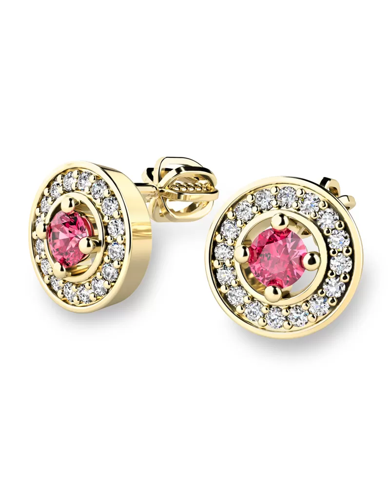 Nádherné luxusní dámské náušnice pecky osázené středovým turmalínem a diamanty budou ideálním dárkem pro každou ženu. Náušnice jsou vyrobeny ze žlutého čtrnáctikarátového zlata - 585/1000 v lesklé povrchové úpravě. Vsazené diamanty jsou vybroušeny dokonalým briliantovým brusem, díky kterému dokonale odráží světlo a jejich brilance neuvěřitelné září z každého úhlu pohledu! Všechny kameny jsou pevně uchyceny krapnami. Vsazování diamantů a drahých kamenů provádějí naši nejzkušenější mistři zlatníci ručně pod mikroskopem s přesností na 0,01mm a proto nehrozí vypadnutí kamínků jako to bývá u strojně vyráběných náušnic. Celé náušnice působí dokonalým a luxusním dojmem! Náušnice se zapínají na šroubek. Šroubek pro balónek je umístěný cca 2 mm pod horní okraj náušnice a tedy krásně zakrývá dírku v uchu.