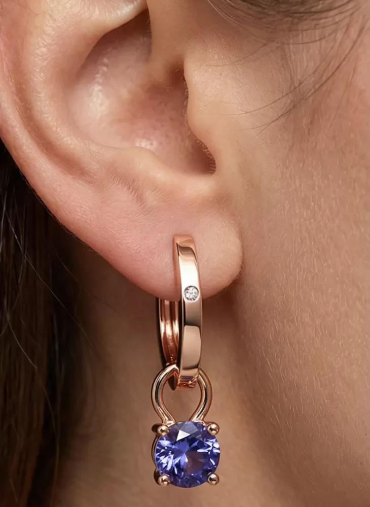 Přívěsky s tanzanity jsou na náušnicích zavěseny "na volno" a tedy je možné je sundat a náušnice nosit i bez přívěsků s barevnými kameny - tedy dle nálady nebo potřeby. Náušnice je možné zakoupit i samostatně bez přívěsků pod kódem 10861-CV, nebo s přívěsky s perlami pod kódem 10861-CV-FW. Pod označením 10861 najdete všechny varianty jak barev zlata, tak s osazenými kameny.