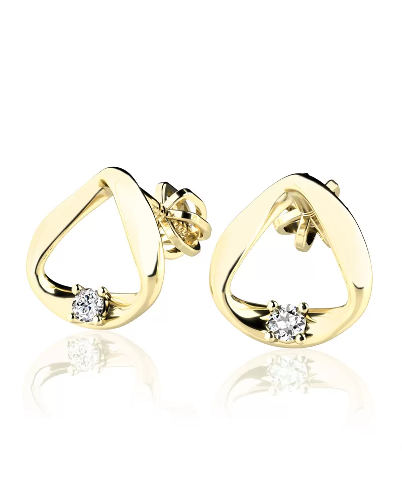 Náušnice jsou vyrobeny ze žlutého čtrnáctikarátového zlata - 585/1000 v kombinaci lesklé a matné povrchové úpravy. Náušnice se zapínají na šroubek. Do náušnic jsou vsazeny dva kulaté diamanty briliantového brusu, který zajišťuje maximální brilanci vybroušených facet. Diamanty jsou pevně uchyceny do čtyřech krapniček. Vsazování diamantů provádějí naši nejzkušenější mistři zlatníci ručně pod mikroskopem s přesností na 0,01mm a proto nehrozí vypadnutí kamínků jako to bývá u strojně vyráběných šperků. Náušnice působí jemným a elegantním dojmem!