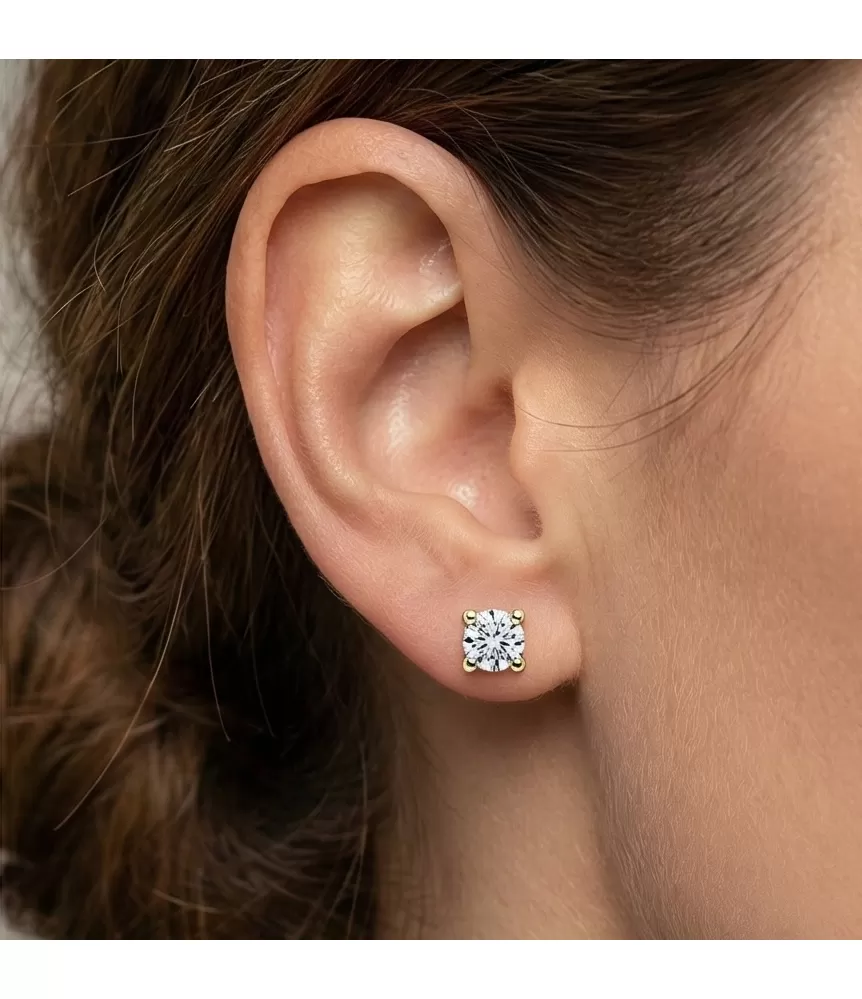 Dámské náušnice pecky jsou velmi oblíbené. V každé náušnici je vsazený jeden menší kulatý diamant vybroušený briliantovým brusem, který dodává diamantu maximalní brilanci i při menších rozměrech kamenů. Tyto elegantní, jednoduché náušnice jsou vyrobeny ze žlutého čtrnáctikarátového zlata - 585/1000 v lesklé povrchové úpravě. Náušnice se zapínají na šroubek.