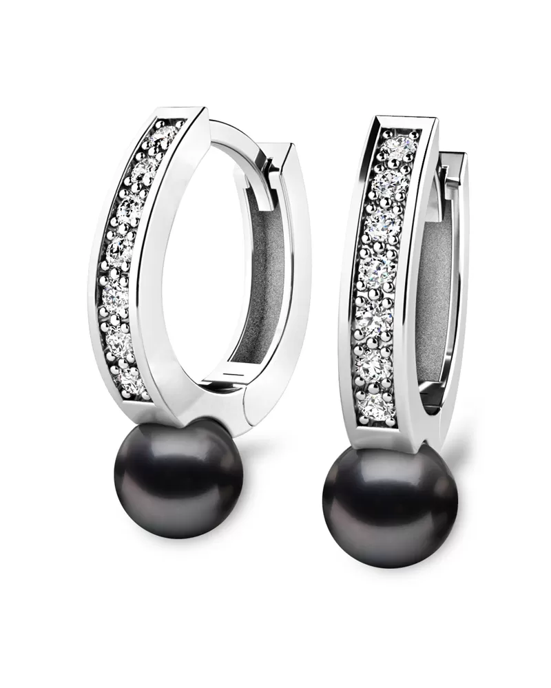 Náušnice bílé zlato 585/1000, přírodní diamanty 0.210ct, přírodní perly 109011-B-DIA-Black