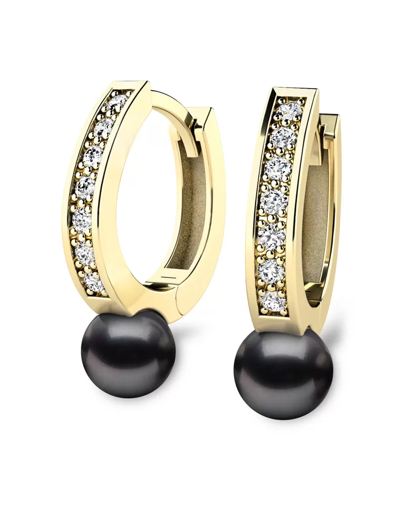 Náušnice žluté zlato 585/1000, přírodní diamanty 0.210ct, přírodní perly 109011-ZL-DIA-Black