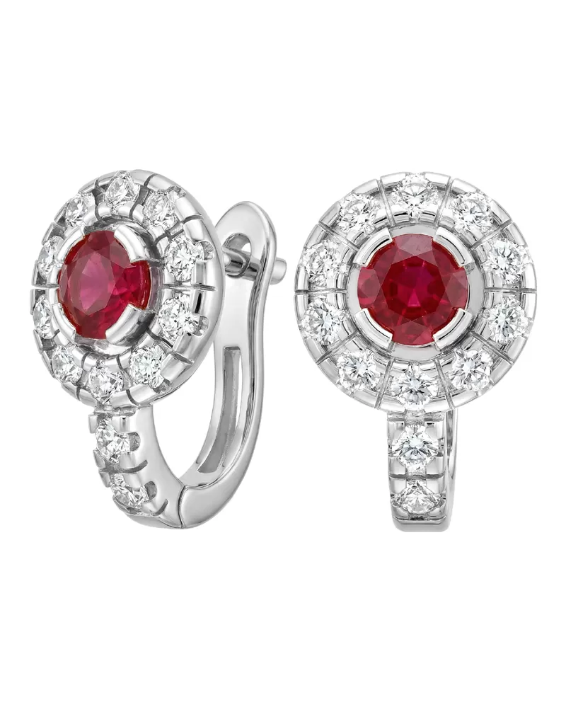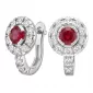 Náušnice typu "podkovičky" patří mezi velmi oblíbené typy náušnic, náušnice jsou vhodné pro každodenní nošení i na společenské akce a sluší každé ženě! Jsou vyrobeny z bílého čtrnáctikarátového zlata - 585/1000 v lesklé povrchové úpravě. V náušnicích je vsazeno "do krapniček" dvacetčtyři menších diamantů a dva větší centrální rubíny. Všechny kameny jsou vybroušeny kulatým briliantovým brusem, který zajišťuje maximální brilanci vybroušených facet ze všech úhlů pohledu! Vsazování diamantů provádějí naši nejzkušenější mistři zlatníci ručně pod mikroskopem s přesností na 0,01mm a proto nehrozí vypadnutí diamantů jako to bývá u strojně vyráběných šperků. Náušnice jsou středně velké, na uchu vypadají elegantně a přirozeně a díky skladbě a stylově čistému vsazení diamantů vynikají krásnou brilancí kamenů!