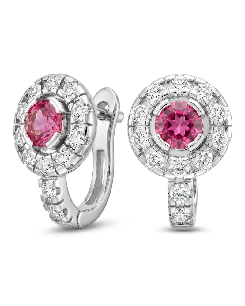 Náušnice typu "podkovičky" patří mezi velmi oblíbené typy náušnic, náušnice jsou vhodné pro každodenní nošení i na společenské akce a sluší každé ženě! Jsou vyrobeny z bílého čtrnáctikarátového zlata - 585/1000 v lesklé povrchové úpravě. V náušnicích je vsazeno "do krapniček" dvacetčtyři menších diamantů a dva větší centrální turmalíny. Všechny kameny jsou vybroušeny kulatým briliantovým brusem, který zajišťuje maximální brilanci vybroušených facet a krásně září ze všech úhlů pohledu! Vsazování diamantů a drahokamů provádějí naši nejzkušenější mistři zlatníci ručně pod mikroskopem s přesností na 0,01mm a proto nehrozí vypadnutí diamantů jako to bývá u strojně vyráběných šperků. Náušnice jsou středně velké, na uchu vypadají elegantně a přirozeně a díky skladbě a stylově čistému vsazení diamantů vynikají krásnou brilancí kamenů!