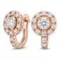 Náušnice typu "podkovičky" patří mezi velmi oblíbené typy náušnic, náušnice jsou vhodné pro každodenní nošení i na společenské akce a sluší každé ženě! Jsou vyrobeny z růžového čtrnáctikarátového zlata - 585/1000 v lesklé povrchové úpravě. V náušnicích je vsazeno "do krapniček" dvacetčtyři menších diamantů a dva větší centrální diamanty. Všechny diamanty jsou vybroušeny kulatým briliantovým brusem, který zajišťuje maximální brilanci vybroušených facet ze všech úhlů pohledu! Vsazování diamantů provádějí naši nejzkušenější mistři zlatníci ručně pod mikroskopem s přesností na 0,01mm a proto nehrozí vypadnutí diamantů jako to bývá u strojně vyráběných šperků. Náušnice jsou středně velké, na uchu vypadají elegantně a přirozeně a díky skladbě a stylově čistému vsazení diamantů vynikají krásnou brilancí kamenů!