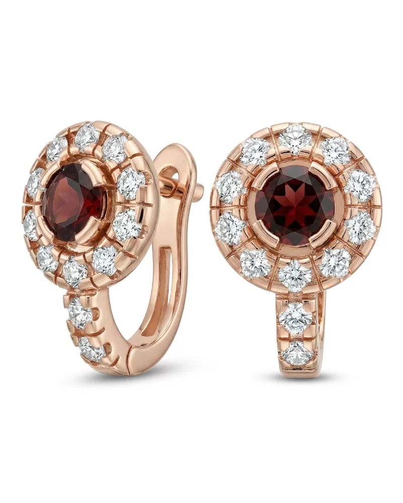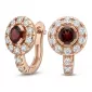 Náušnice růžové zlato 585/1000, přírodní diamanty a granáty, 109015-CV-GRA