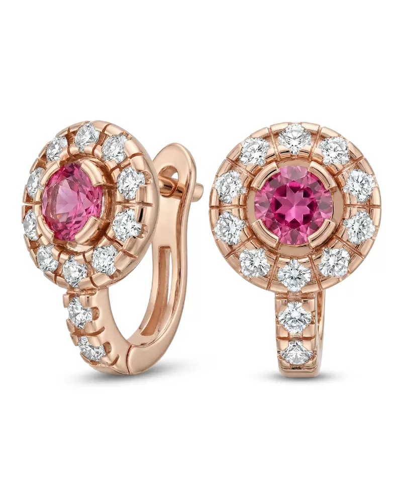 Náušnice růžové zlato 585/1000, přírodní diamanty a turmalíny, 109015-CV-TUR