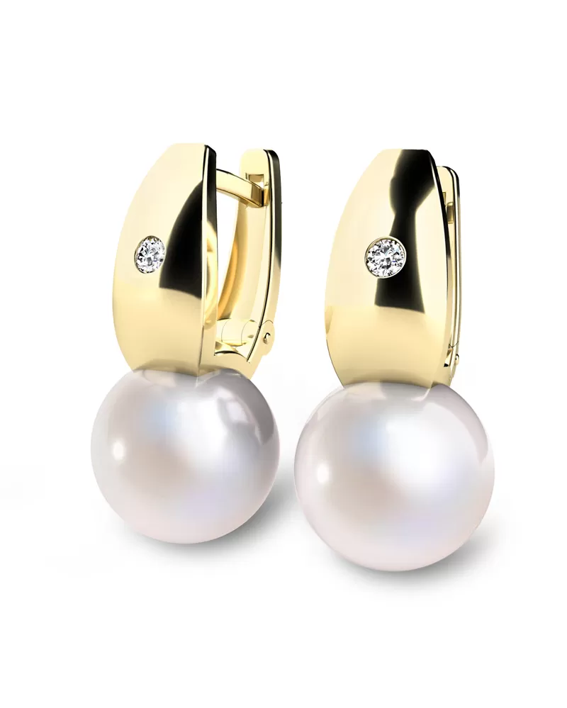 Náušnice žluté zlato 585/1000, přírodní diamanty 0.032ct, přírodní perly 10988ZL-DIA-FW