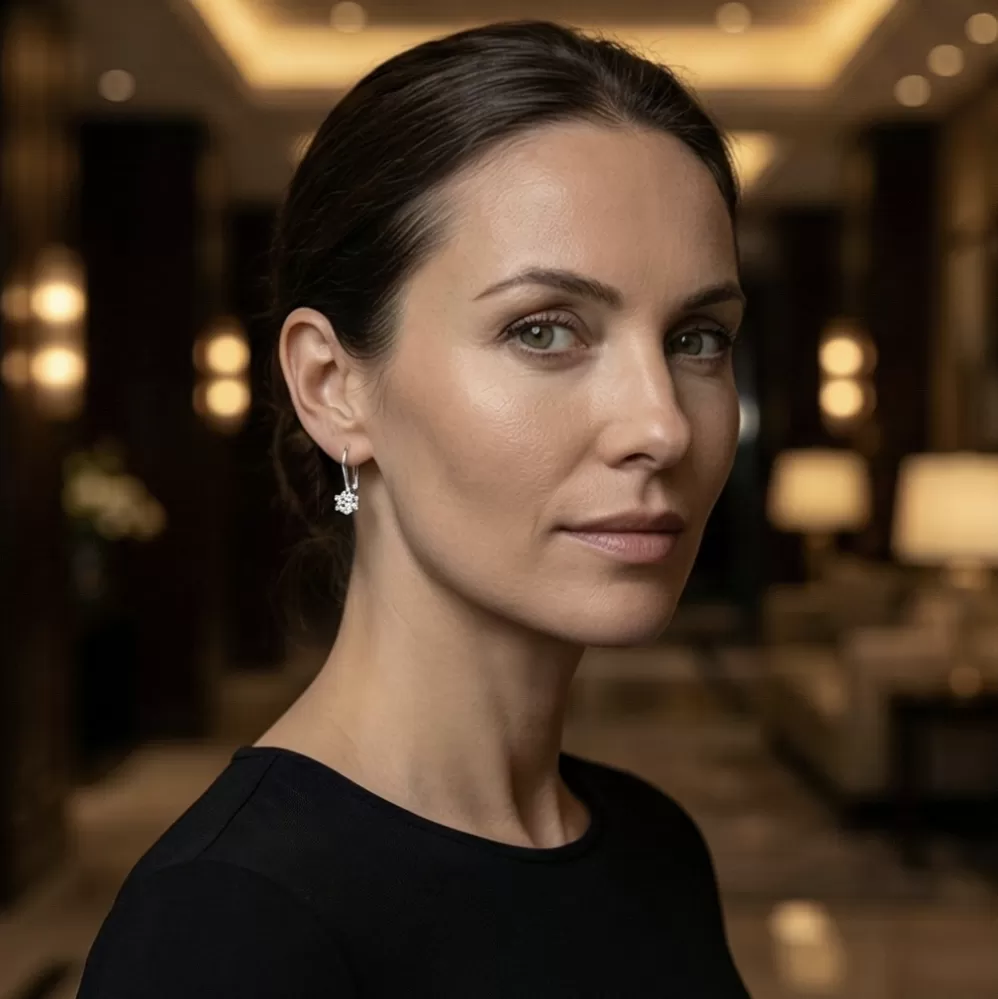 Nechce se rozmazlovat zářivými diamanty vsazené do visacích náušnic. Tyto nádherné, zářivé náušnice jsou vyrobeny z bílého čtrnáctikarátového zlata - 585/1000 v lesklé povrchové úpravě. Visací náušnice jsou zdobeny jedním diamantem briliantového brusu, který je vsazen do náušnic a obklopen šesti krapnami. Díky preciznímu brusu diamanty získají dokonalou brilanci. Skvěle odráží světlo a září. Zapínání náušnic je na klapku.