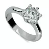 Oslňující prsten je zdoben velkým kulatým diamantem, který je precizně uchycen šesti krapnami.  Diamant je v briliantovém brusu, který zajišťuje maximální brilanci vybroušených facet, dokonale odráží světlo a neuvěřitelně září z každého úhlu pohledu! Vsazování diamantů provádějí naši nejzkušenější mistři zlatníci ručně pod mikroskopem s přesností na 0,01mm a proto nehrozí vypadnutí kamínků jako to bývá u strojně vyráběných přívěsků. Šperk je vyroben z bílého čtrnáctikarátového zlata - 585/1000 v lesklé povrchové úpravě.