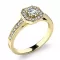 Zásnubní prsten je vyroben ze žlutého čtrnáctikarátového zlata - 585/1000 v lesklé povrchové úpravě. Prsten má výjimečný design, kde dominuje zirkon čtvercového brusu Princess, který je uchycený do čtyřkrapnové korunky. Toto uchycení nechá zirkon dokonale vyniknout v jeho kráse a brusu. Okolo tohoto zirkonu po celém obvodu je vsazeno 16 zářivých kulatých zirkonů, které prsten zjemňují. Pro dokonalé zvýraznění prstenu jsou po stranách v obroučce vsazeno 7 ks kulatých zirkonů na obou stranách. Všechny kulaté zirkony mají briliantový brus Signity star, který zajišťuje maximální brilanci kamenů. Díky skladbě a stylově čistému vsazení zirkonů, vyniká prsten krásnou brilancí kamenů. Vsazování zirkonů do zásnubních prstenů provádějí naši nejzkušenější mistři zlatníci ručně pod mikroskopem s přesností na 0,01mm a proto nehrozí vypadnutí kamínků jako to bývá u strojně vyráběných zásnubních prstenů.