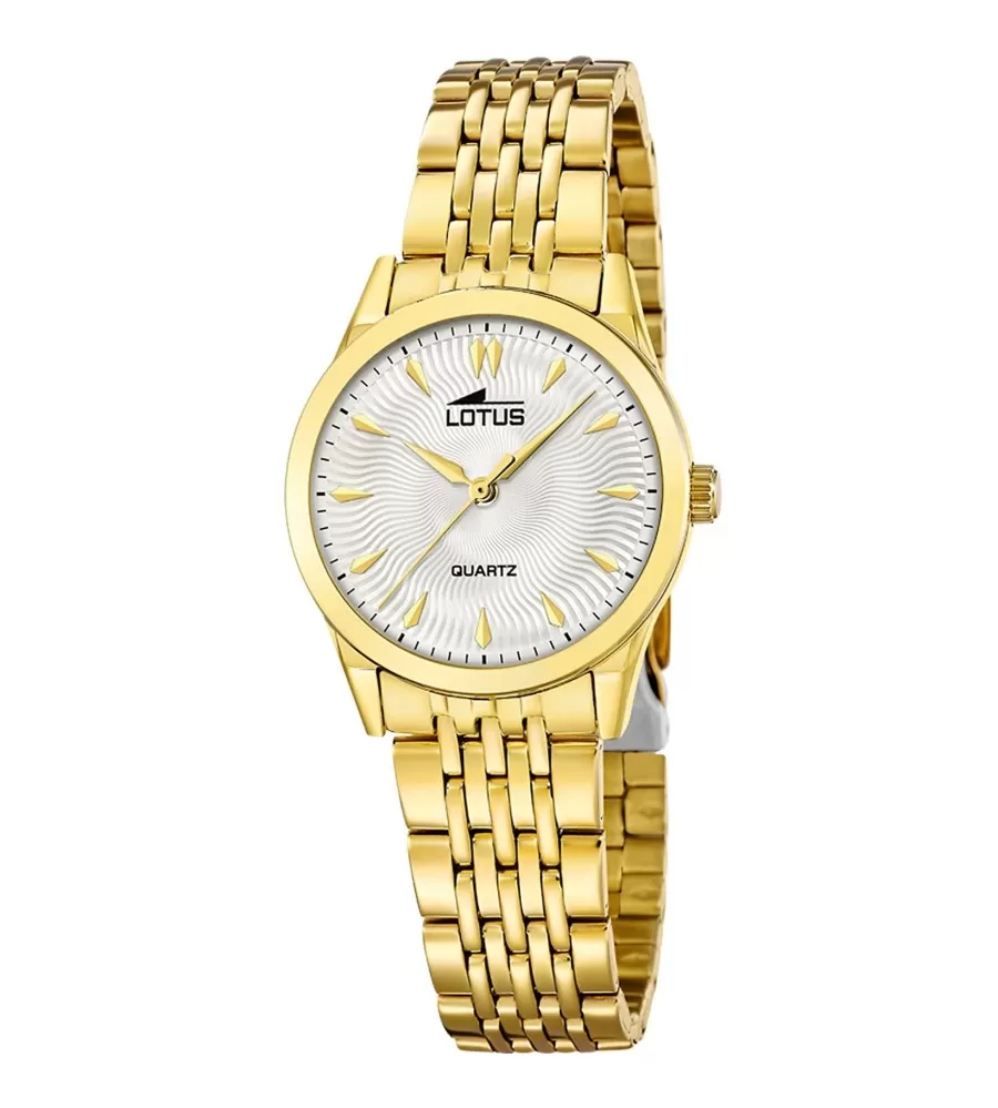 Dámské hodinky Lotus Classic Bracelet L19059/1 působí elegantním a nadčasovým dojmem, který se hodí pro každodenní nošení i formálnější příležitosti. Mají klasický analogový ciferník v čistém a přehledném provedení, který zajišťuje snadnou čitelnost času. Kovové pouzdro i náramek ve zlatém tónu dodávají modelu jemnou eleganci a univerzálnost. Minerální sklíčko chrání ciferník před drobnými škrábanci a běžným opotřebením. Hodinky jsou navrženy tak, aby pohodlně seděly na zápěstí a zároveň podtrhly ženský styl. Celkový design kombinuje jednoduchost, praktičnost a vkusný luxus.